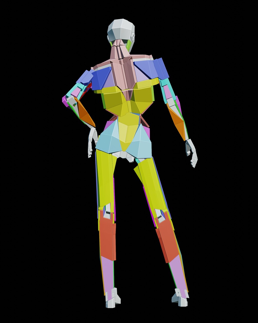Low poly skeleton and muscles made in blender using planes, solidify modifiers and finally rigged with rigify. I mainly made it so I can use it as reference for my drawings, I took a lot of inspiration from Loomis and Bridgman books.